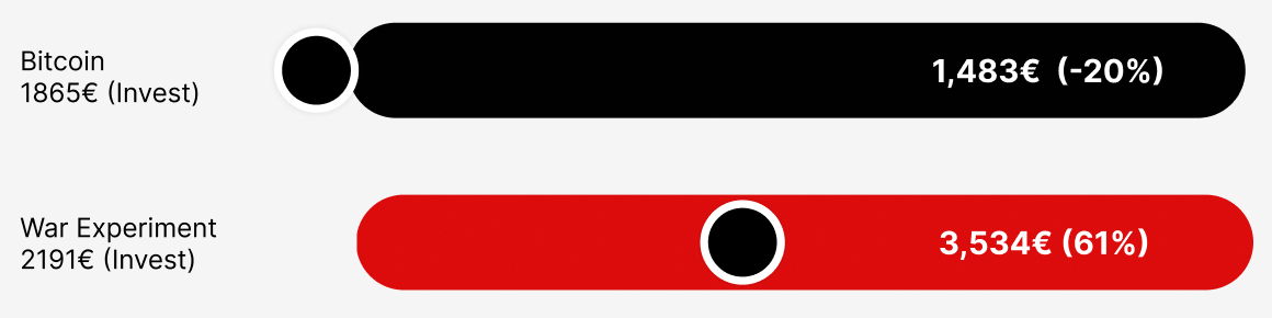 We pledged approx. €2000 for you to see the ups 😀 and downs 👎 Defence stocks and and Bitcoin down amidst current economic uncertainty.